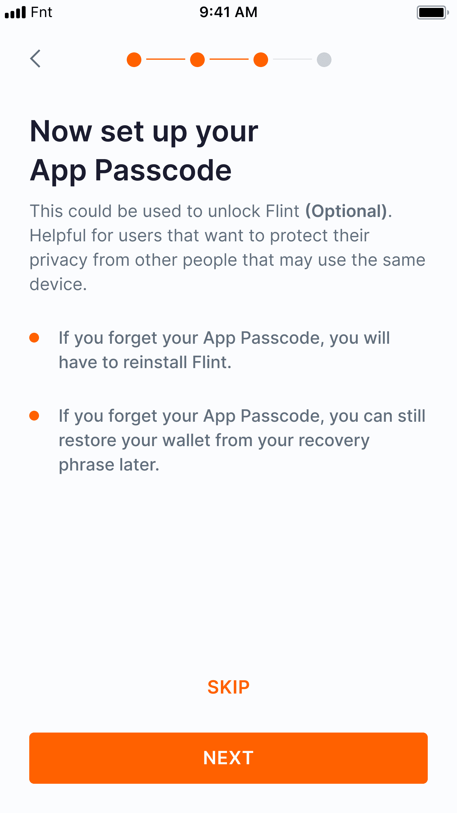 We delivered a production‑ready onboarding system for Flint Mobile and Flint Chrome Extension, backed by a solid design system (tokens, core components, and copy guidelines). In testing, more users finished setup, made fewer errors, and reported higher confidence on first run. The shared foundations now support future wallet flows without re‑solving the same problems.