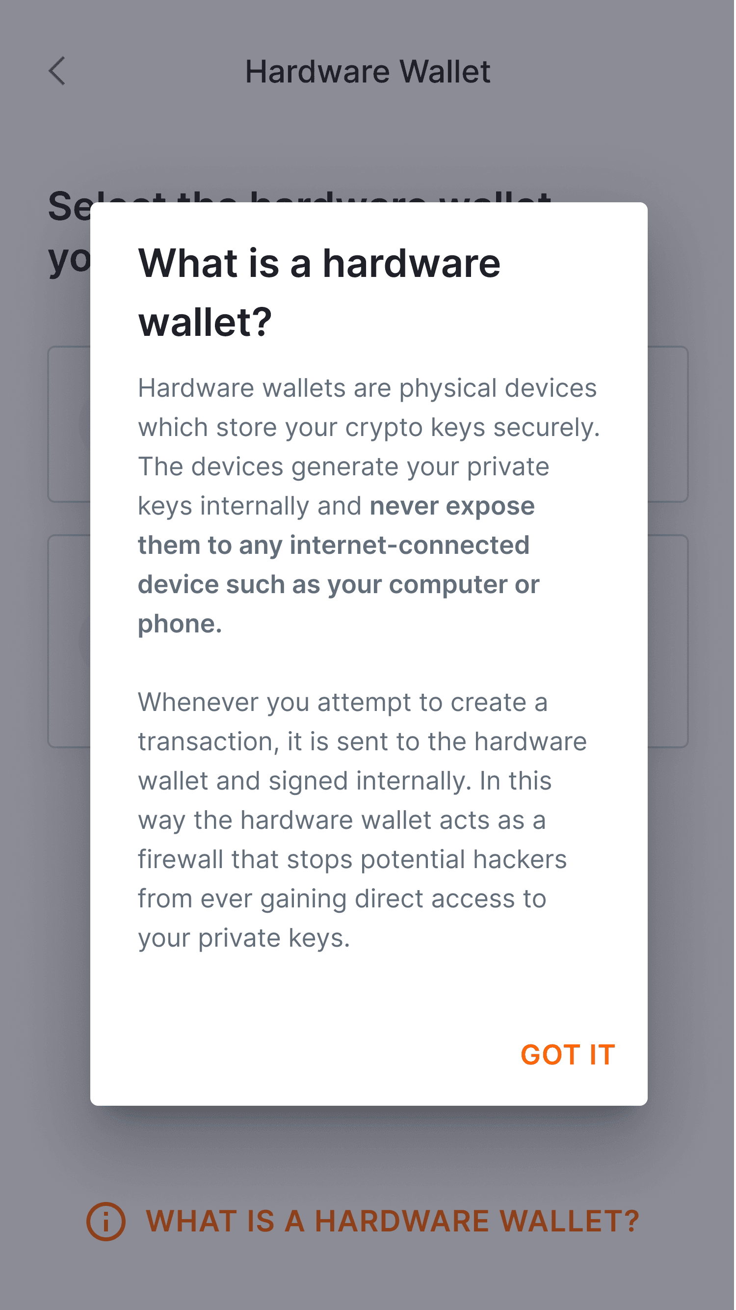 To further reduce friction, we rewrote technical copy into clear, approachable language, adding helper text and tooltips to explain complex terms like "hardware wallet" exactly when the user needs them.